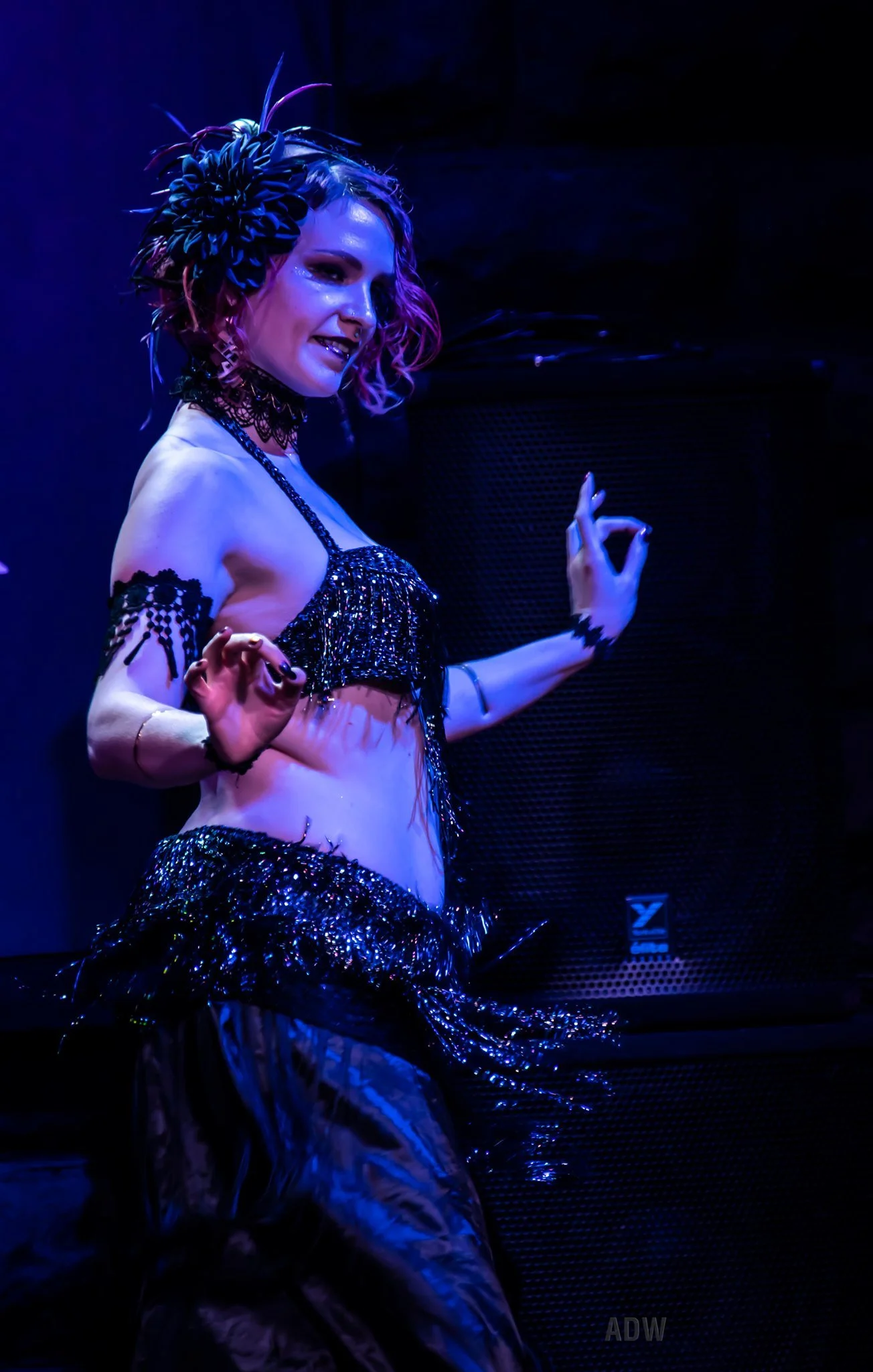 Throughout her creative adventures, and regardless of the paths she traversed, it was inevitable that Bonnie’s journey would lead to Fusion dance. Bonnie (she/they) is an artist in many forms, and she delights in exploring what happens when multiple ideas are fused. She has been dancing since she was young, including solo forms such as Ballet, Hip Hop, Waving, Jazz and Blues, as well as partnered forms such as Rockabilly and Lindy Hop. When her path led to Bellydance, she recognized immediately a dance that spoke to something innate in the way her body is curious to move. She finds the opposing forces, layering, and textures found in Bellydance can be combined in seemingly infinite ways, which is in alignment with her life-long quest to find out what can be created when we experiment and play.