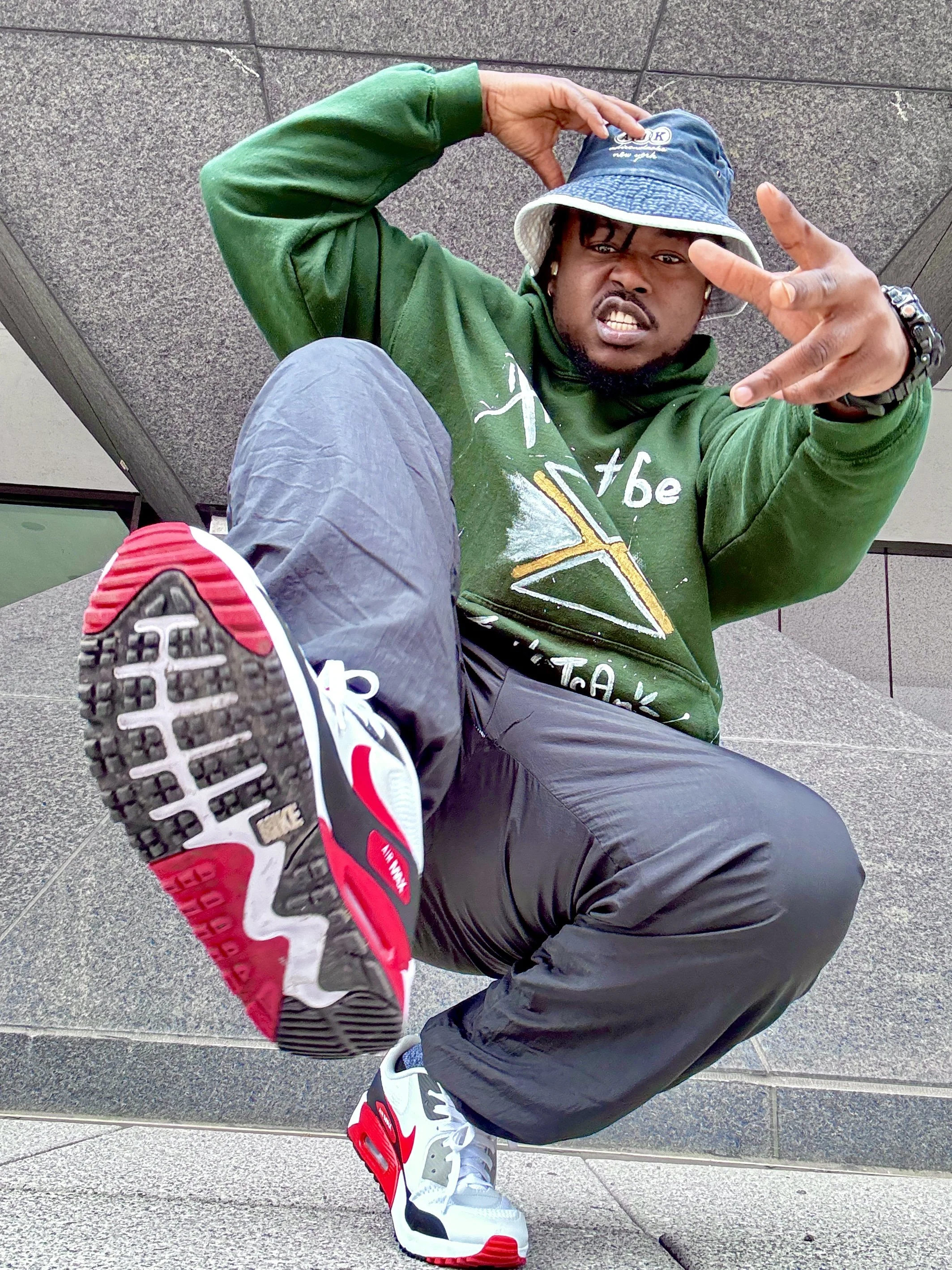 Eugene “Tin Man” Cleveland (Rochester, NY) brings 25 years of dance experience and a creative footprint that spans multiple disciplines. He is the founder of Tin Feet Tall Wear, Tin Feet Tall Productions, and the dance collective Kizz Intel. While his foundation is rooted in hip hop and breakdancing, his work today is defined by more than technical range — it reflects a deep commitment to culture, artistry, and community.